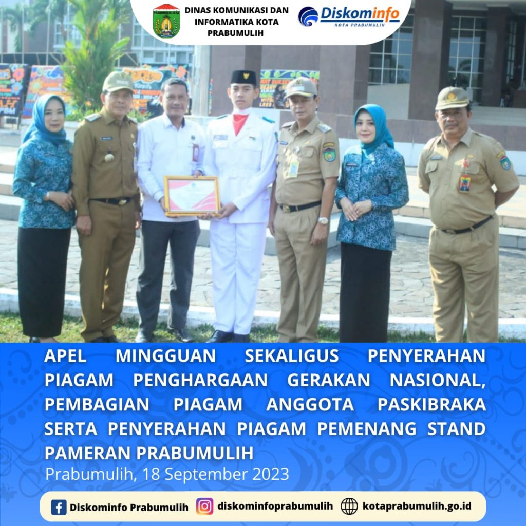 APEL MINGGUAN SEKALIGUS PENYERAHAN PIAGAM PENGHARGAAN GERAKAN NASIONAL, PEMBAGIAN PIAGAM ANGGOTA PASKIBRAKA SERTA PENYERAHAN PIAGAM PEMENANG STAND PAMERAN PRABUMULIH