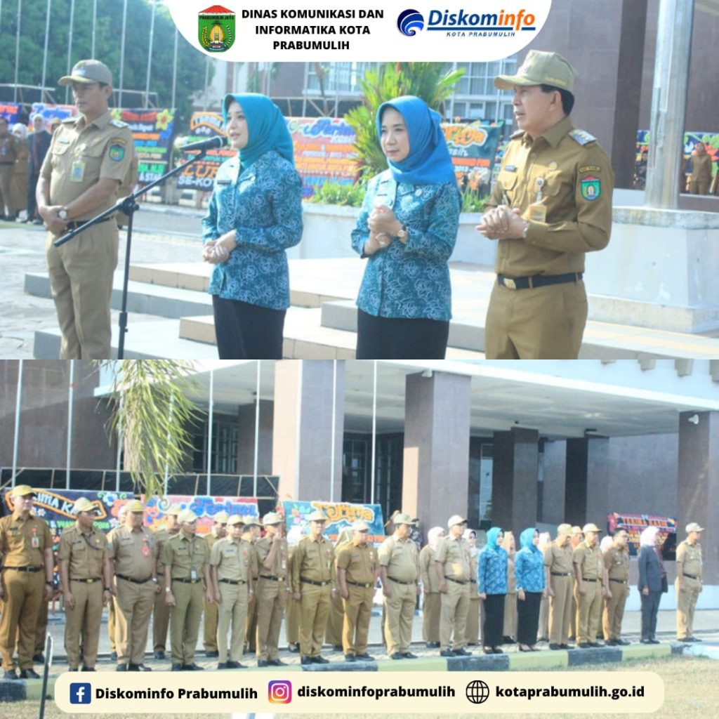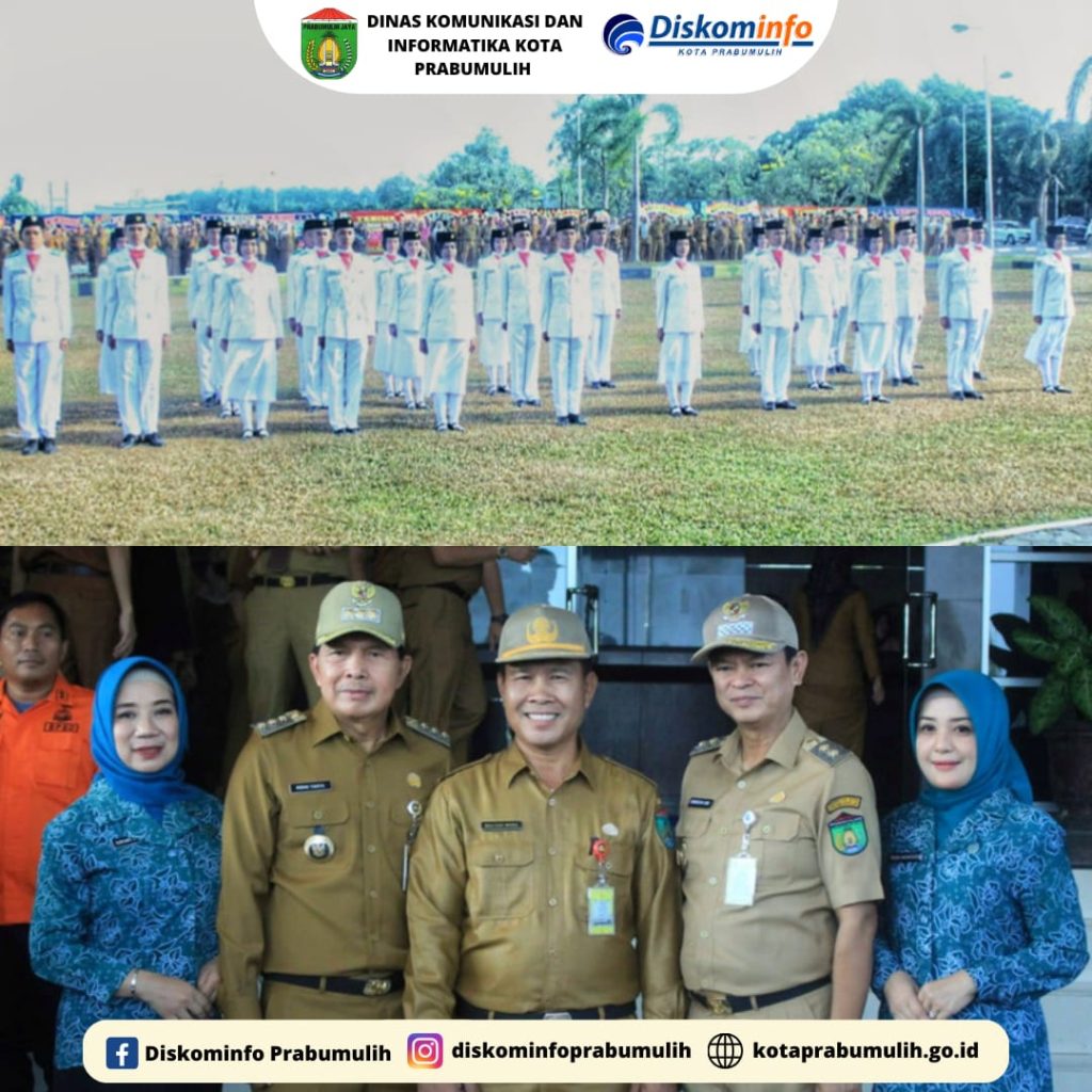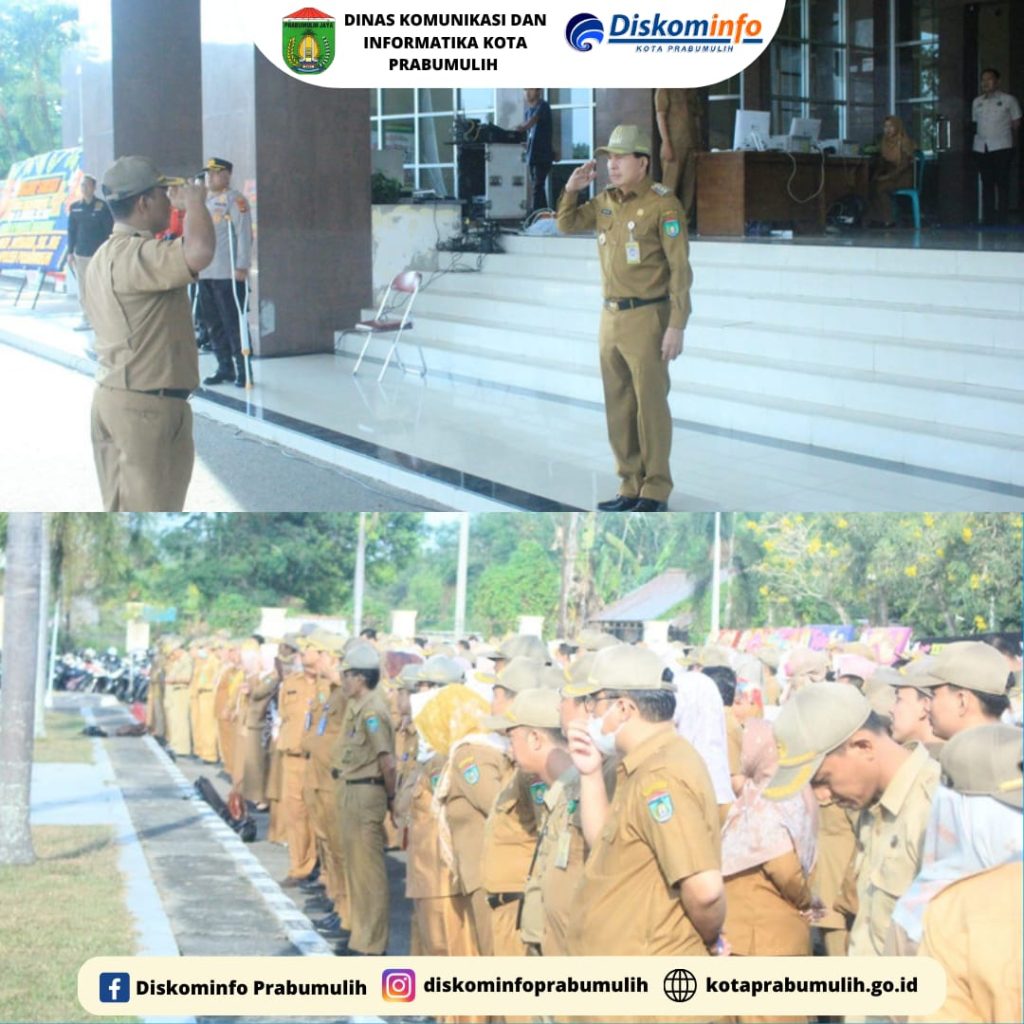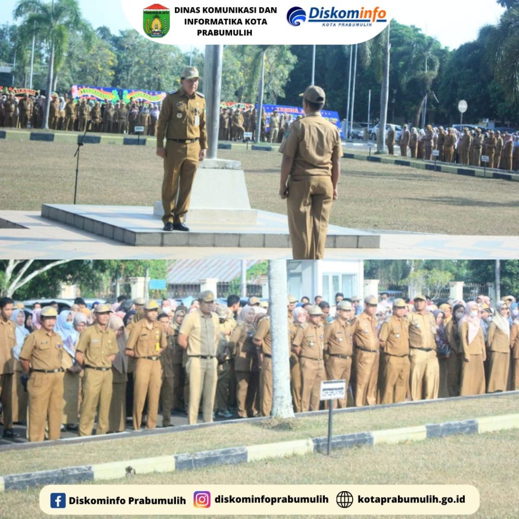 Walikota Prabumulih Ir. H. Ridho Yahya, MM Didampingi Wakil Walikota Prabumulih H. Andriansyah Fikri, SH dan Ketua TP PKK Kota Prabumulih Ir. Hj. Ngesti Rahayu Ridho Wakil Ketua TP PKK Kota Prabumulih Hj. Reni Indayani Fikri, SKM. M.Si Beserta Asisten I II III., Kepala Badan, Kepala Bagian Melaksanakan Apel Mingguan Sekaligus Penyerahan Piagam Penghargaan Gerakan Nasional Pembagian 10 Juta Bendera Merah Putih dari Kementerian Dalam Negeri Kepada Pemerintah Kota Prabumulih dan Pembagian Piagam Anggota Paskibraka Tahun 2023 Kota Prabumulih Serta Penyerahan Piagam dan Piala Pemenang Stand Pameran Prabumulih Expo HUT RI Ke-78 Tahun 2023.