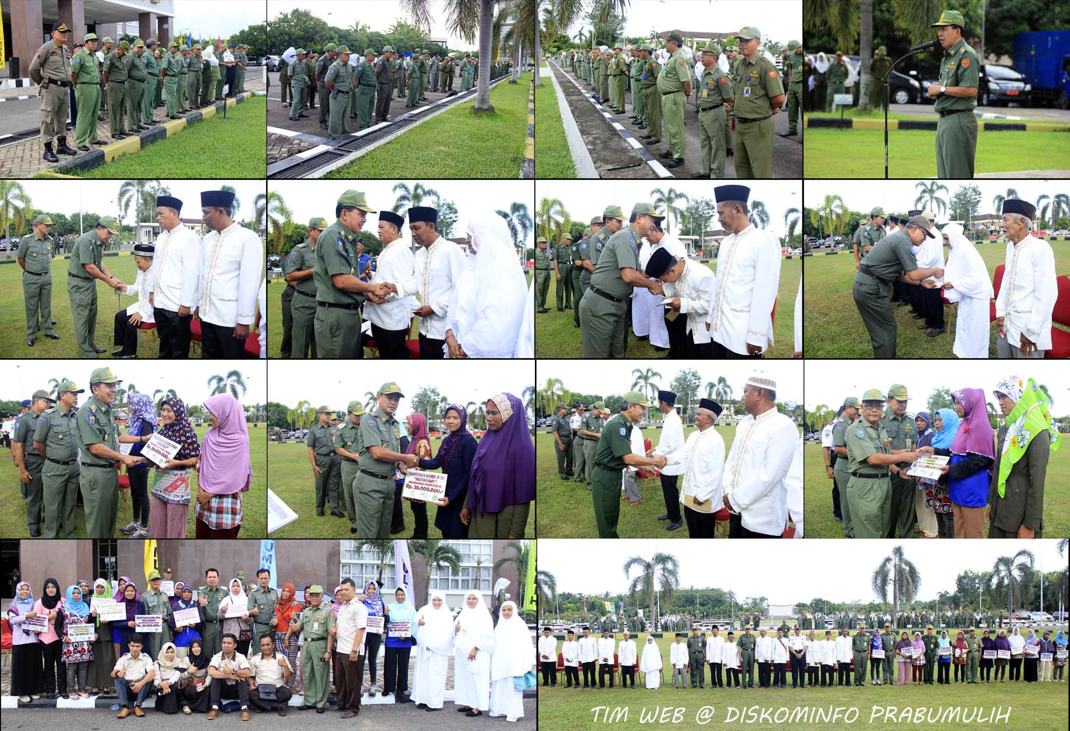 Prabumulih, Senin 27 Nopember 2017. Bertempat di Halaman Pemerintah Kota Prabumulih, berlangsung Apel Mingguan serta penyerahan reward umrah, kube dan e-warunk. Apel mingguan dipimpin langsung oleh Walikota Prabumulih H.Ridho Yahya. Dalam amanatnya Ridho mengungkapkan rasa syukur yang mendalam atas telah diserahkannya reward umrah, bantuan modal usaha kube dan e-warunk, dimana umrah diberikan pemerintah kota sebagai bentuk terimakasih kepada para penerima yang telah berdedikasi atas kelangsungan pembangunan kota Prabumulih. Begitu juga untuk bantuan modal usaha tersebut, diberikan untuk lebih memajukan usaha para kelompok usaha. Besar harapan beliau agar para penerima umrah dapat melaksanakan ibadahnya dengan khusyuk, serta dalam keadaan sehat sampai kembali lagi ke kota Prabumulih. Penerima Bantuan modal usaha kiranya dapat memanfaatkan bantuan tersebut dengan sebaik mungkin. Tutupnya. Sebelumnya telah diserahkan reward umrah, bantuan modal usaha oleh Walikota beserta unsur muspida terkait. Turut hadir Wakil Walikota H.Andriansyah Fikri, Sekda Prabumulih H.M.Kowi, Asisten, Kepala Dinas, Kepala Badan, Kepala Bagian, seluruh peserta apel di lingkup Pemerintah Kota Prabumulih. Sumber : Diskominfo Prabumulih.