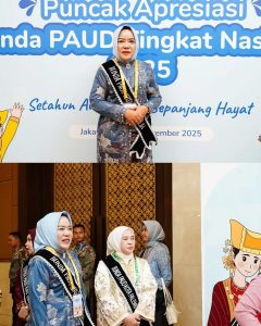 Jakarta, 13 November 2025 — Bunda PAUD Kota Prabumulih Hj. Linda Apriana Arlan menghadiri acara Apresiasi Bunda PAUD Tingkat Nasional Tahun 2025 yang diselenggarakan oleh Kementerian Pendidikan Dasar dan Menengah di The Sultan Hotel and Residence, Jakarta.