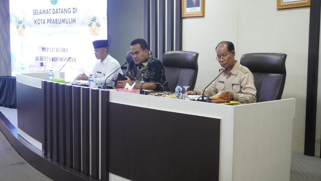 PLH Sekda Bapak Aris Priadi, SH., M.Si., membersamai Kunjungan Kerja Bupati Kabupaten Blora ke Kota Prabumulih.Acara berlangsung dari pukul 13.00 SD selesai dan berlokasi di Ruang Rapat Lantai 1 Pemerintah Kota Prabumulih.