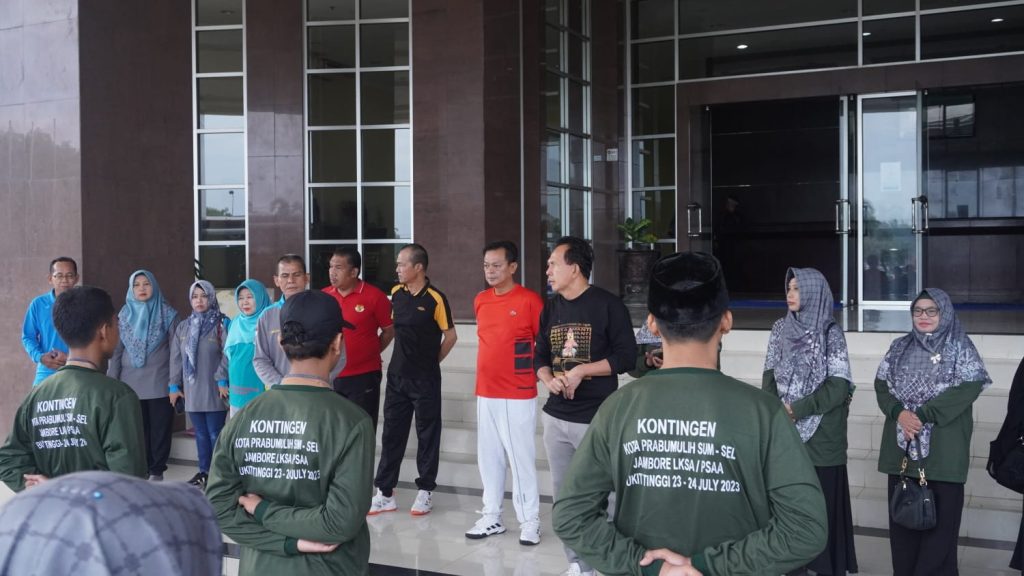Walikota Prabumulih Ir. H. Ridho Yahya, MM., didampingi Wakil Walikota Prabumulih H. Andriansyah Fikri, SH., menghadiri acara Keberangkatan Kontingen Jambore LKSA-PSAA Kota Prabumulih 2023.