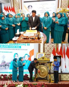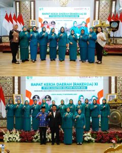 Palembang, 17 November 2025 – Ketua TP PKK Kota Prabumulih, Hj. Linda Apriana Arlan, menghadiri Rapat Kerja Daerah (Rakerda) XI TP PKK Provinsi Sumatera Selatan Tahun 2025 yang mengusung tema “Bergerak Bersama, Perkuat Kolaborasi Serta Mewujudkan Prioritas dan Unggulan, Menuju Sumsel Maju Terus Untuk Semua.” Kegiatan berlangsung dengan khidmat dan penuh semangat kolaborasi antarunsur PKK se-Sumatera Selatan.