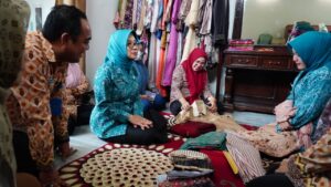 Ketua TP PKK Kota Prabumulih Ir. Hj. Suryanti Ngesti Rahayu didampingi Wakil Ketua TP PKK Kota Prabumulih Hj. Reni Indayani, S.KM.,M.Si dan Ketua Dharma Wanita Windriana Elman melakukan Kunjungan ke Rumah Busana Riady sentra tenun serat daun nanas