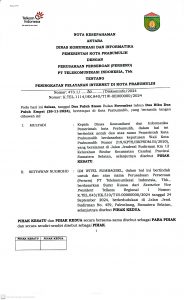 Nota Kesepahaman Antara Dinas Komunikasi dan Informatika (Kominfo) Kota Prabumulih dengan Perusahaan Perseroan (Persero) PT Telekomunikasi Indonesia, Tbk tentang Peningkatan Pelayanan Internet di Kota Prabumulih.