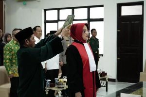 PALEMBANG–Ketua Pengadilan Tinggi Eka Kartika, SH M.Hum melantik RA AsriningrumK usumawardhani SH MH sebagai Ketua Pengadilan Negeri Kota Prabumulih, Rabu 27 Desember 2023 di Kantor Pengadilan Tinggi Palembang.
