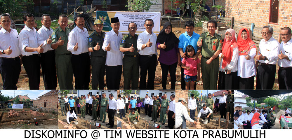 Prabumulih, Senin 14 Mei 2018. Badan Amil Zakat Nasional Kota Prabumulih melaksanakan Penyaluran Dana Zakat, Infaq dan Shodaqoh Ditjen Perbendaharaan Kantor Wilayah Provinsi Sumatera Selatan berupa kegiatan Peletakan Batu Pertama Pembangunan Baru Rumah “Sehat Sederhana” Saudari Hartati warga Kelurahan Sukaraja Kecamatan Prabumulih Selatan Kota Prabumulih.Hadir dalam kegiatan tersebut yaitu Staf Ahli Walikota Ir. M. Ardi Supratman, Ketua Baznas Prabumulih H.Najamudin Said, Kepala Bagian Kesra Prabumulih Adhi Gustiawan, Kepala Ditjen Perbendaharaan Kakanwil Sumsel Bpk. Sudarso, Kepala BPN seSumsel, Camat Prabumulih Selatan, Lurah Sukaraja dan tamu undangan lainnya. (SUMBER : DISKOMINFO)