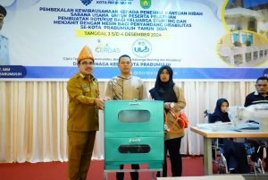 PEMERINTAH – Pemerintah Kota Prabumulih melalui Dinas Ketenagakerjaan Kota Prabumulih (DISNAKER) terus meningkatkan kesejahteraan masyarakat, terutama keluarga dengan anak stunting dan penyandang disabilitas dengan mengadakan pelatihan pembuatan roti/kue dan menjahit dengan mesin, serta pemberian bantuan hibah berupa oven untuk keluarga stunting dan alat menjahit untuk penyandang disabilitas.