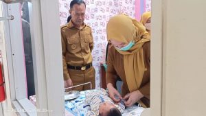 Pj. Wali Kota Prabumulih, H. Elman, ST., MM bersama Kadinkes dr. Bambang Wahyu meninjau langsung layanan ini di Puskesmas Pasar Prabumulih.