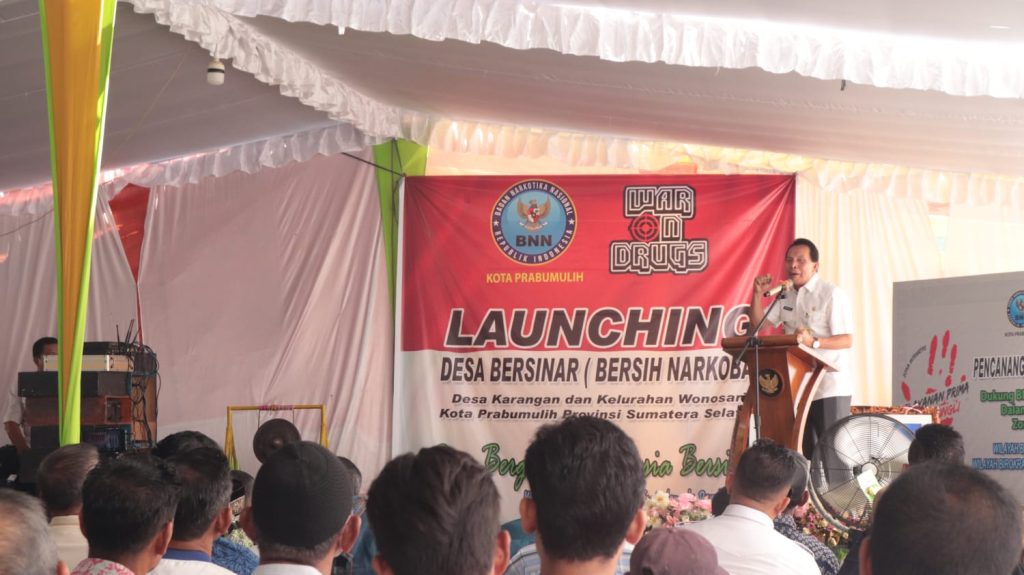 Walikota Prabumulih Ir. H. Ridho Yahya, MM., didampingi Staf Ahli Walikota Mulyadi Karoman, S.Pd., M.Si., menghadiri acara Pencanangan Pembangunan Zona Integritas BNN menuju Wilayah Bebas Korupsi (WBK) dan Wilayah Birokrasi Bersih Melayani (WBBK) di BNN Kota Prabumulih Sekaligus Launching Desa Bersinar (Bersih Dari Narkoba) di Desa Karangan.