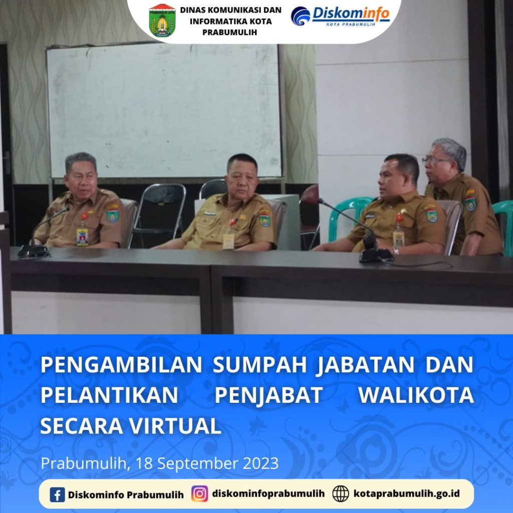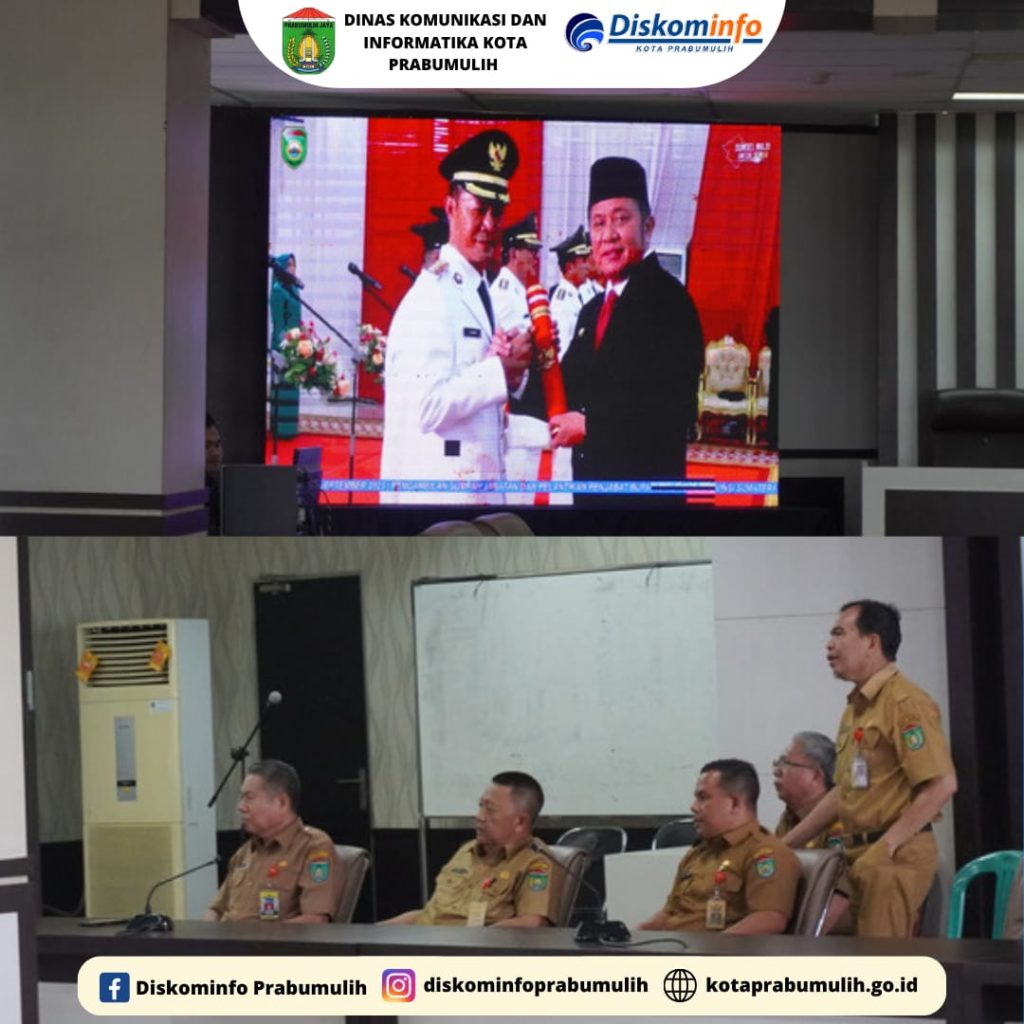 Asisten II Setda Kota Prabumulih Drs. H. Muhammad Ali, M.Si dan Asisten III Setda Kota Prabumulih Drs. Amilton beserta jajaran Kepala OPD di lingkup pemerintah Kota Prabumulih menyaksikan Pengambilan Sumpah Jabatan dan Pelantikan Penjabat Walikota Secara Virtual di Ruang Rapat Lantai 1 Pemerintah Kota Prabumulih.