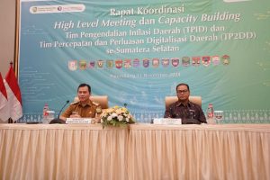 Penjabat Walikota Prabumulih H. Elman, ST, M.M Menghadiri Rapat Koordinasi dan High Level Meeting dan Capacity Building Tim Pengendalian Inflasi Daerah (TPID ) dan Tim Percepatan dan Perluasan Digitalisasi Daerah ( TP2DD ) Se -Sumatera Selatan.