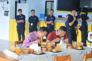 PRABUMULIH – Penjabat Walikota Prabumulih H. Elman, ST MM bersama Kapolres Kota Prabumulih AKBP Endro Aribowo S.I.K didampingi para OPD mencoba Mie Gacoan di Resto Mie Gacoan Cabang Prabumulih, Jumat (31/05/2024).