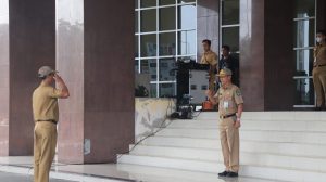 Sekretaris Daerah Prabumulih Elman., ST., MM memimpin apel pagi mingguan di halaman kantor Pemerintah Kota Prabumulih