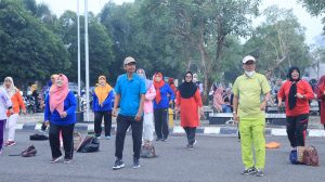 PRABUMULIH— Pemerintah Kota Prabumulih terus mendorong upaya gerakan masyarakat hidup sehat, salah satunya dengan melakukan aktivitas fisik yakni senam bersama.