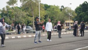 Pejabat Sekretaris Daerah Prabumulih Drs Aris Priadi, SH, M.Si, Asisten II Drs Muhammad Ali, M.Si , Asisten III Drs Amilton, Staf Ahli Walikota, Kepala OPD Senam Bersama yang dilaksanakan setiap hari Jumat pagi di Halaman Kantor Pemerintah Kota Prabumulih.