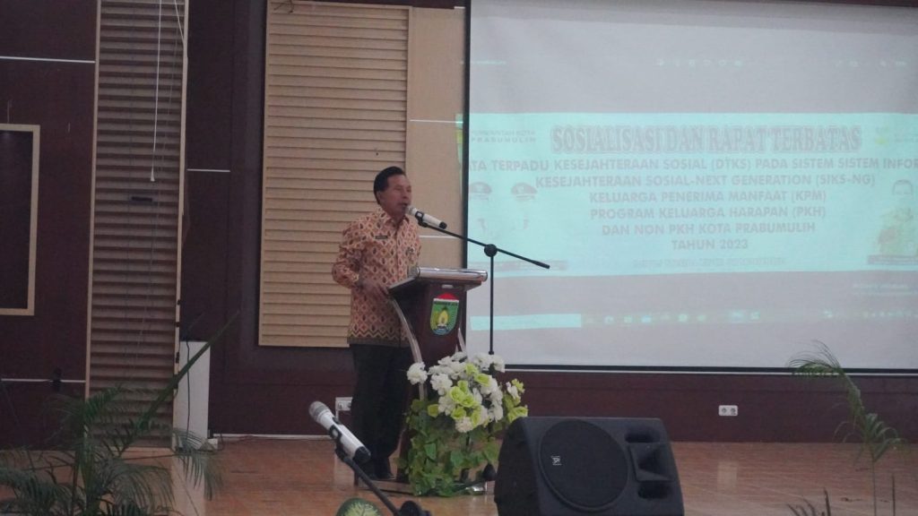 Walikota Prabumulih Ir. H. Ridho Yahya, MM., menghadiri acara Sosialisasi dan Rapat Terbatas Data Terpadu Kesejahteraan Sosial (DTKS) pada Sistem Informasi Kesejahteraan Sosial – Next Generation (SIKS-NG) Keluarga Penerima Manfaat (KPM) Program Keluarga Harapan (PKH) dan Non PKH Kota Prabumulih Tahun 2023.