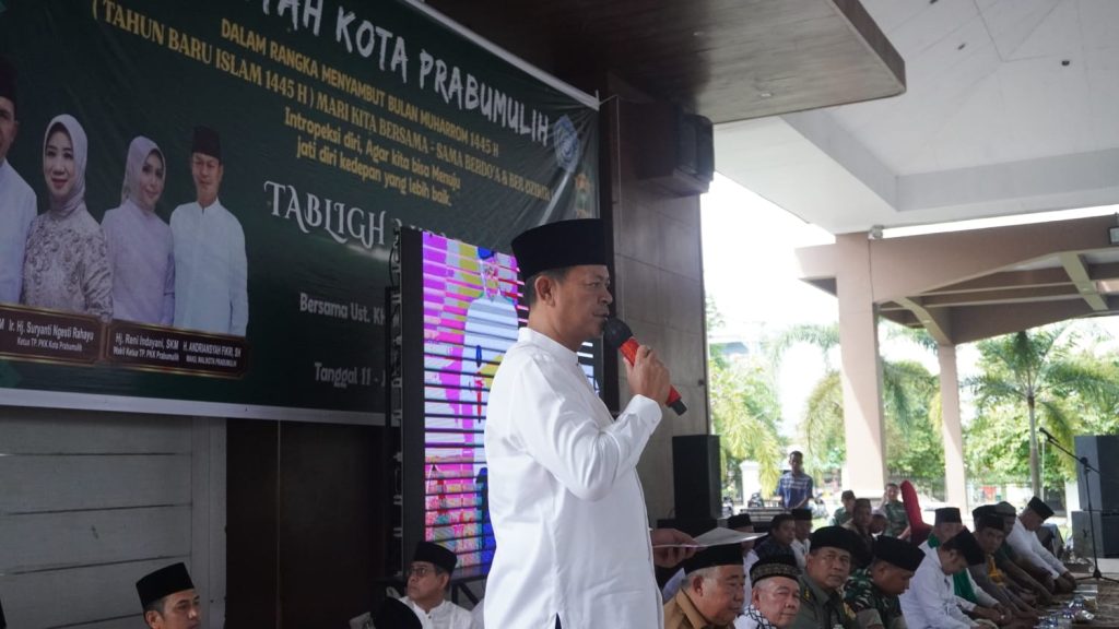 Prabumulih – Selasa (11/07/2023) Wakil Walikota Prabumulih H. Andriansyah Fikri, SH., didampingi PLH Sekda Drs. Aris Priadi, SH., M.Si menghadiri Tabligh Akbar Menyambut Tahun Baru Islam ( 1 Muharram ) 1445 H / 2023 M. Berlokasi di Pendopoan Rumah Dinas Walikota Prabumulih.