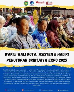 PALEMBANG, 5 Agustus 2025 — Wali Kota Prabumulih H. Arlan diwakili oleh Asisten II Setda Kota Prabumulih, Drs. H. Muhammad Ali, M.Si, menghadiri acara penutupan Sriwijaya Expo 2025 yang digelar di kawasan Benteng Kuto Besak (BKB), Palembang.