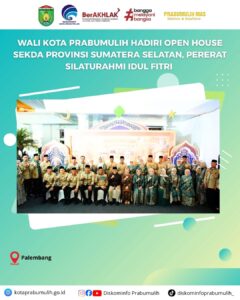 Prabumulih, 22 Maret 2026 — Dalam rangka mempererat tali silaturahmi pasca Hari Raya Idulfitri 1447 Hijriah, Wali Kota Prabumulih H. Arlan menghadiri kegiatan Open House yang diselenggarakan oleh Sekretaris Daerah Provinsi Sumatera Selatan.Kehadiran Wali Kota Prabumulih dalam kegiatan tersebut didampingi oleh Ketua TP PKK Kota Prabumulih Hj. Linda Arlan, Wakil Wali Kota Prabumulih Franky Nasril, S.Kom., M.M, serta Staf Ahli TP PKK Nuning Mulya Franky.