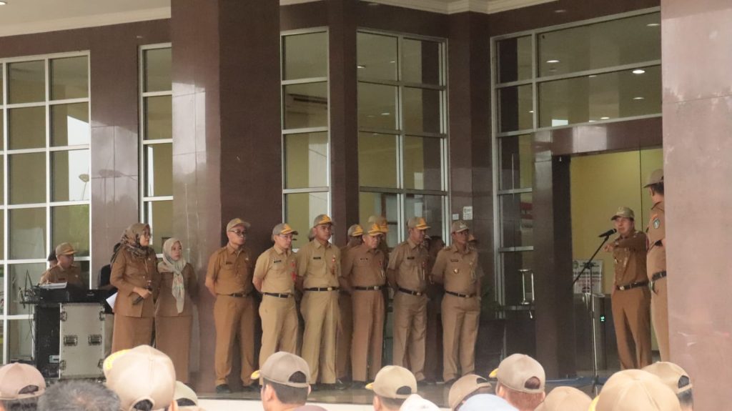 Prabumulih – Senin (24/07/2023) Pelaksanaan Apel Pagi Mingguan yang dilakukan di Halaman Kantor Pemerintahan Kota Prabumulih. Walikota Prabumulih Ir. H. Ridho Yahya, MM., sebagai pembina apel pagi hari ini.